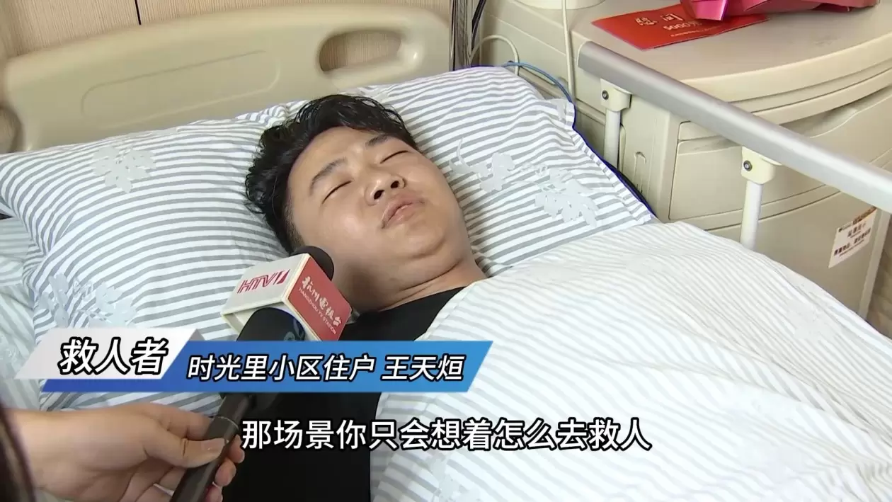 施救者 王天烜:那场景你只会想着怎么去救人,不会去想着他会不会砸到你或砸到我或者怎么样,只要保住他的生命,我做的就是值得的。