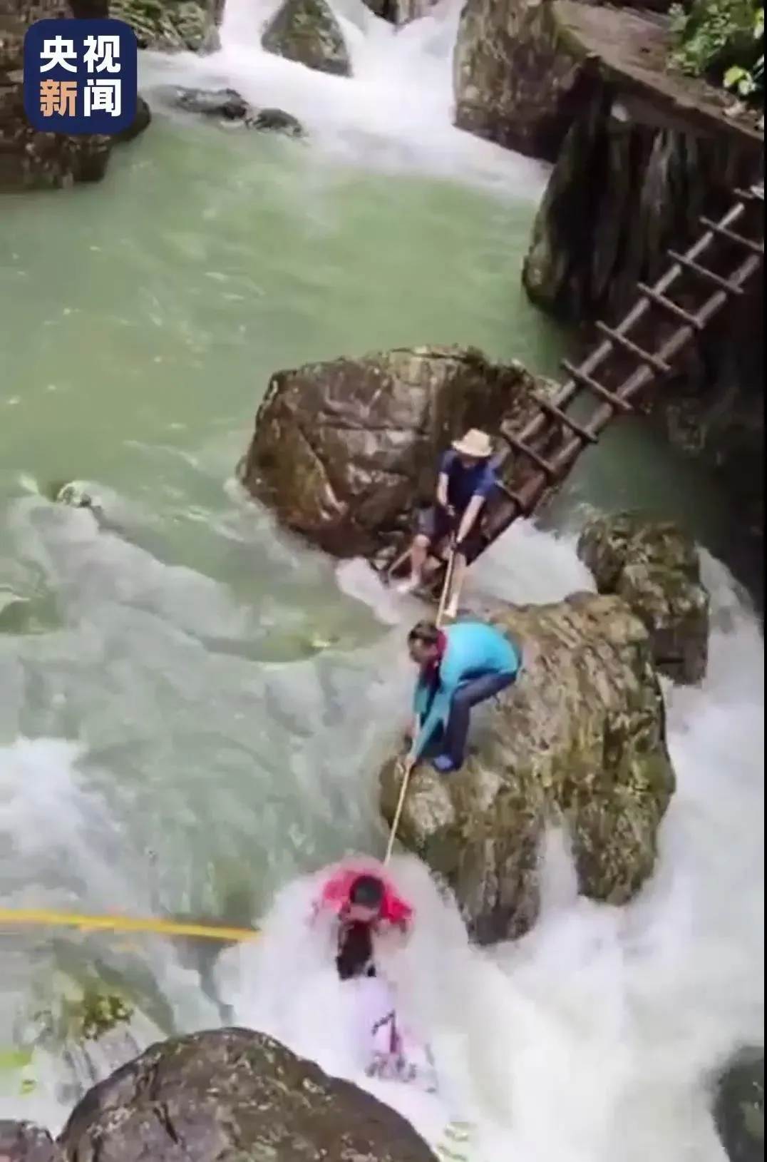 两人落水后,绳索形成“死亡V字流”。