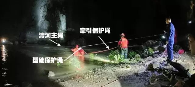 祁兴龙表示,不建议非专业人士渡河,在迫不得已需要涉水渡河时,涉水者身上至少有两根安全保护绳索:一根短绳(基础保护绳)连接渡河主绳,另一根为牵引保护绳,由岸上保护人员牵引。