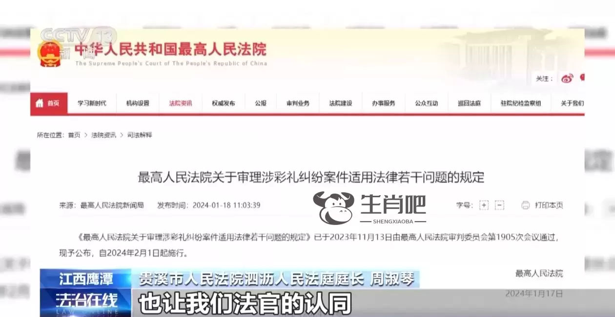 贵溪市人民法院泗沥人民法庭庭长 周淑琴:整个司法解释内容对于彩礼的认定,对于符合彩礼返还的情形,有了更加详细的解释。也让我们基层法官在审理此类案件中有了更多的指引和方向。也让我们法官的认同,与普通民众的朴素价值观找到了一个更好的契合点。
