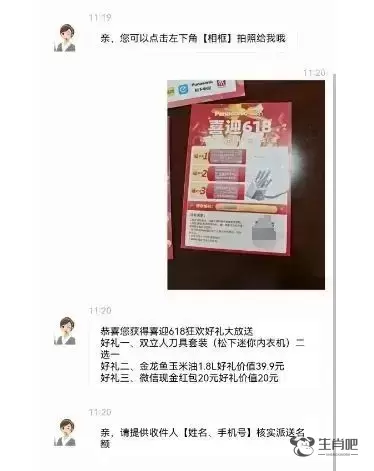 第二步 : 受害人“ 中奖 ”后便会扫码进群联系“客服”进行奖品兑换,“客服”通过兑换小额红包或小礼品取得受害人信任。