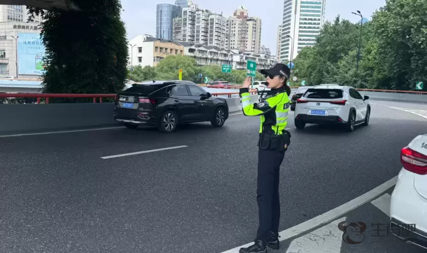 当时,高架交警大队城中中队骑警周袁正准备和同事交接工作,突然发现对向车道上的车一下子停了下来,甚至还有人打开车门下车。