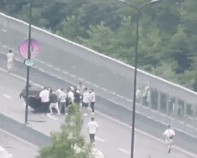 这一喊,后面一众司机立马行动,从车里跑出来帮忙。最远的,甚至是从百米开外飞奔而来。