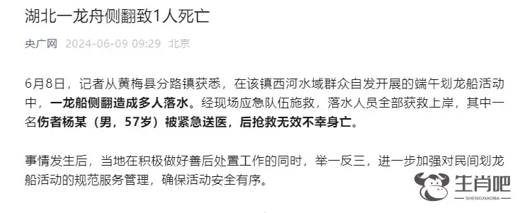 据央广网消息,6月8日,湖北黄梅县分路镇西河水域群众自发开展的端午划龙船活动中一龙船侧翻造成多人落水。