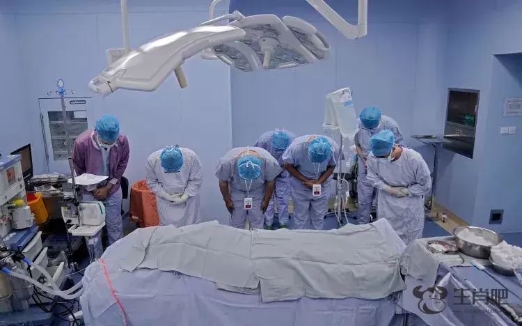 5月31日8:45,手术前,医护人员集体鞠躬向齐洪波致敬。