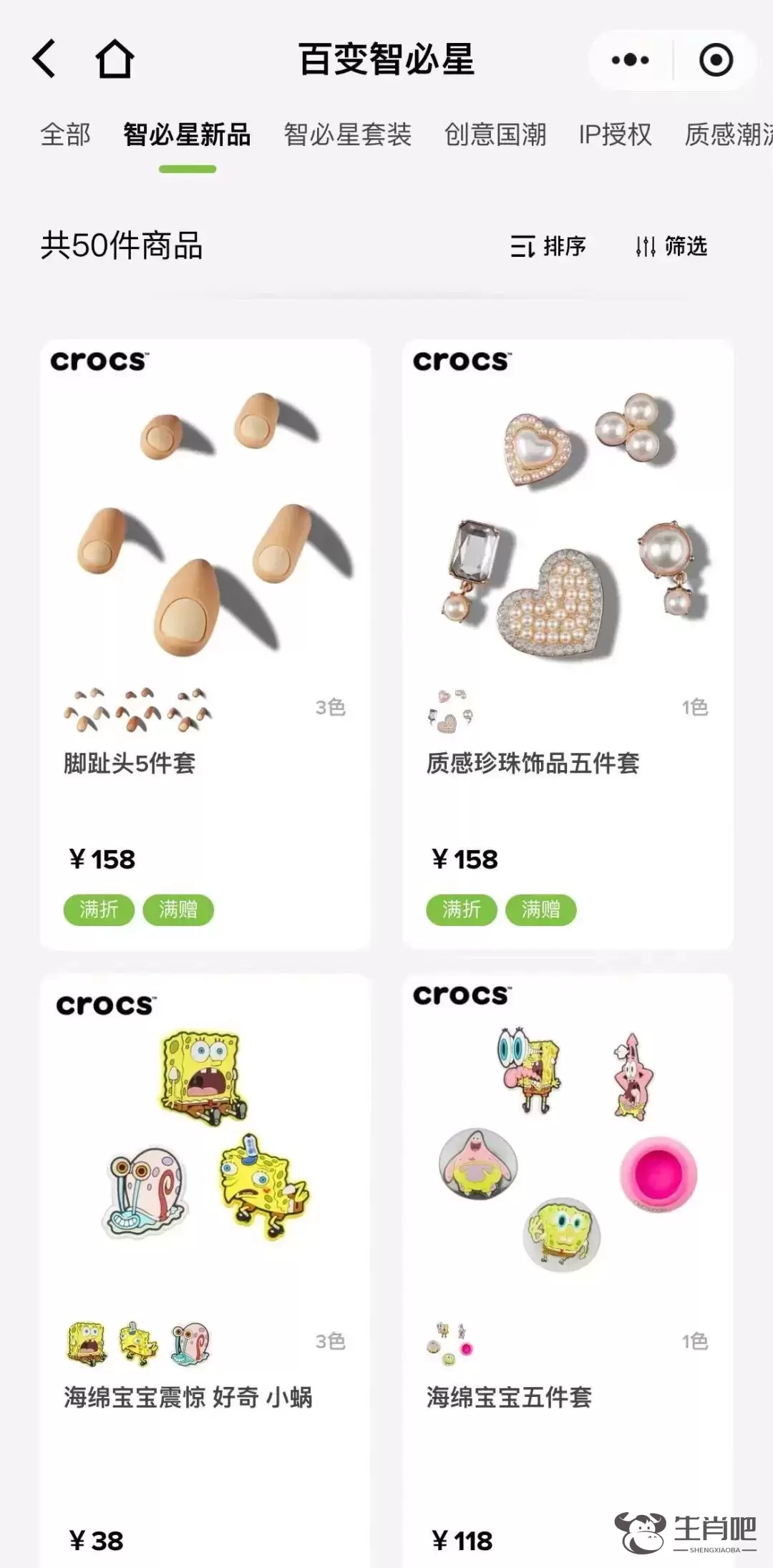 “智必星”就是装饰鞋面洞洞的鞋花,单个价格在38至58元不等。按照一双鞋26个洞洞来算,用最便宜的鞋花填满整个鞋面,光鞋花就得花费988元,远超洞洞鞋本身。