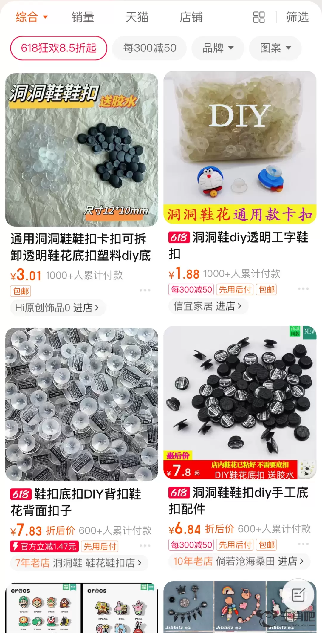 还有不少网友打开脑洞DIY(自己动手做)鞋花,在电商平台上10个鞋扣还送胶水的DIY材料包才3元多。