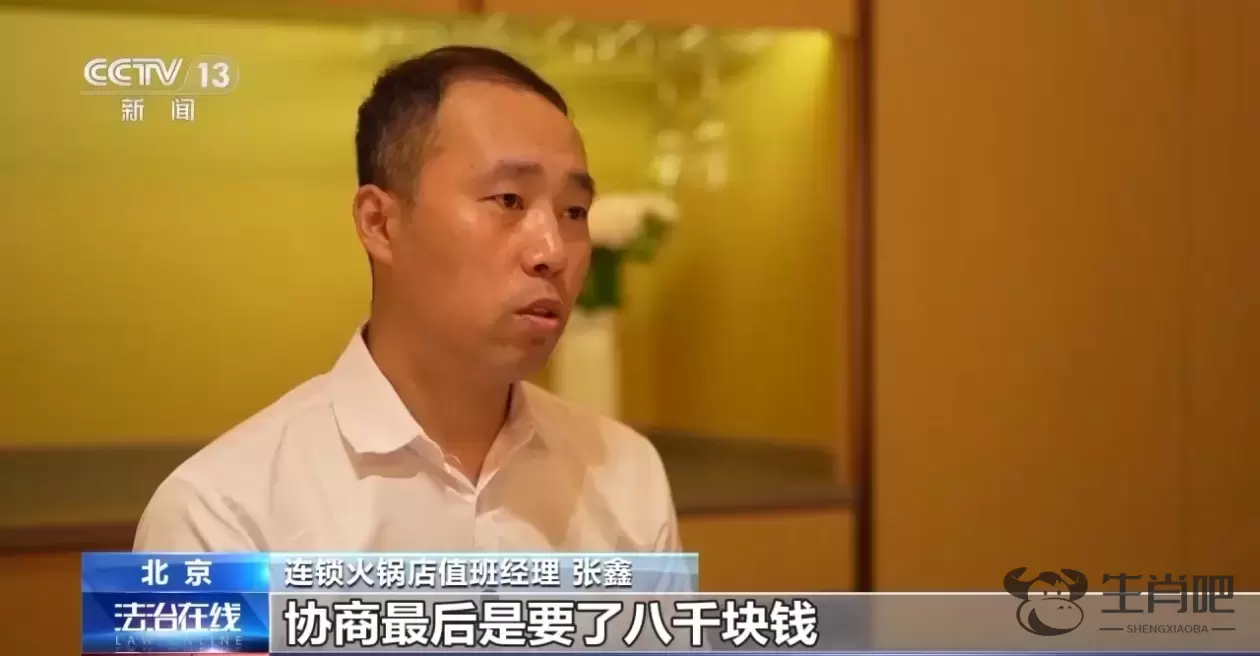 连锁火锅店值班经理 张鑫:我说按照有异物的情况,咱们该怎么赔就怎么赔偿。这客人就一直就不让走,协商后要了八千元。