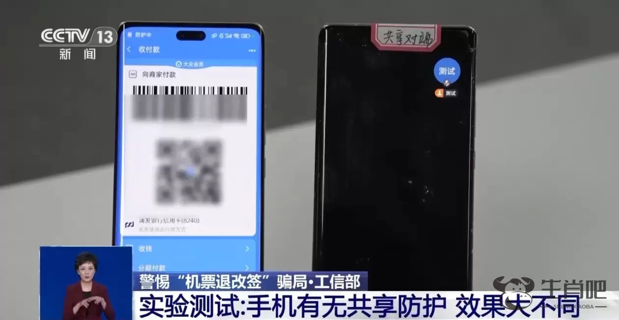 在测试使用手机支付程序付款码时,采取防护措施的手机会自动对共享端的付款码界面进行黑屏处理;而没有防护技术的手机则把付款二维码直接暴露在另一部共享手机的屏幕上。