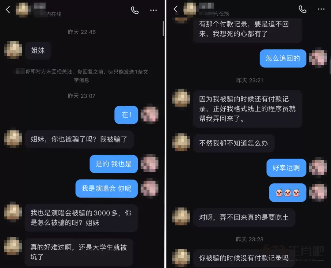 近日,杭州西湖区三墩某小区一名大学生莉莉(化名)通过微博找到一个代购演唱会门票的途径,莉莉支付给对方1699元门票,加500元代购费共计2199元。可想而知,莉莉既收不到门票也等不到退款,知道自己被骗后,莉莉一心想把被骗的钱追回来,于是她就在某APP平台上搜索买演唱会门票被骗的钱怎么要回来。没想到还真有人发帖讲述自己类似的经历,遇到了和自己有相同经历的网友,莉莉迫不及待地在帖子上留言并等待回复。