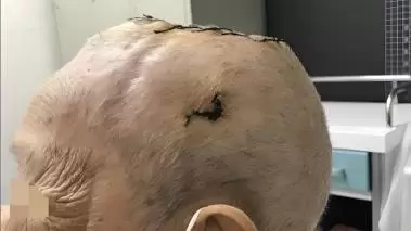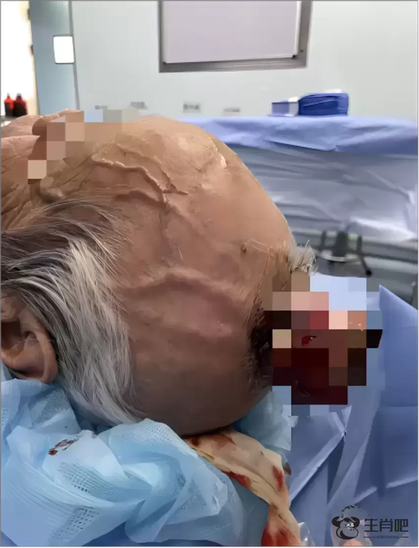 当解开纱布的一刹那,所有在场的医生都发出了一声惊叹。只见患者头顶部是一片“蘑菇样”肿物,皮肤表面已经溃破,大量脓性分泌物伴着血腥液体。医生透露,老人得的是一种罕见的皮肤附件来源肿瘤,仁济医院整形外科主任陈蕊团队为老人最终成功切除长达五年的“头顶蘑菇”。