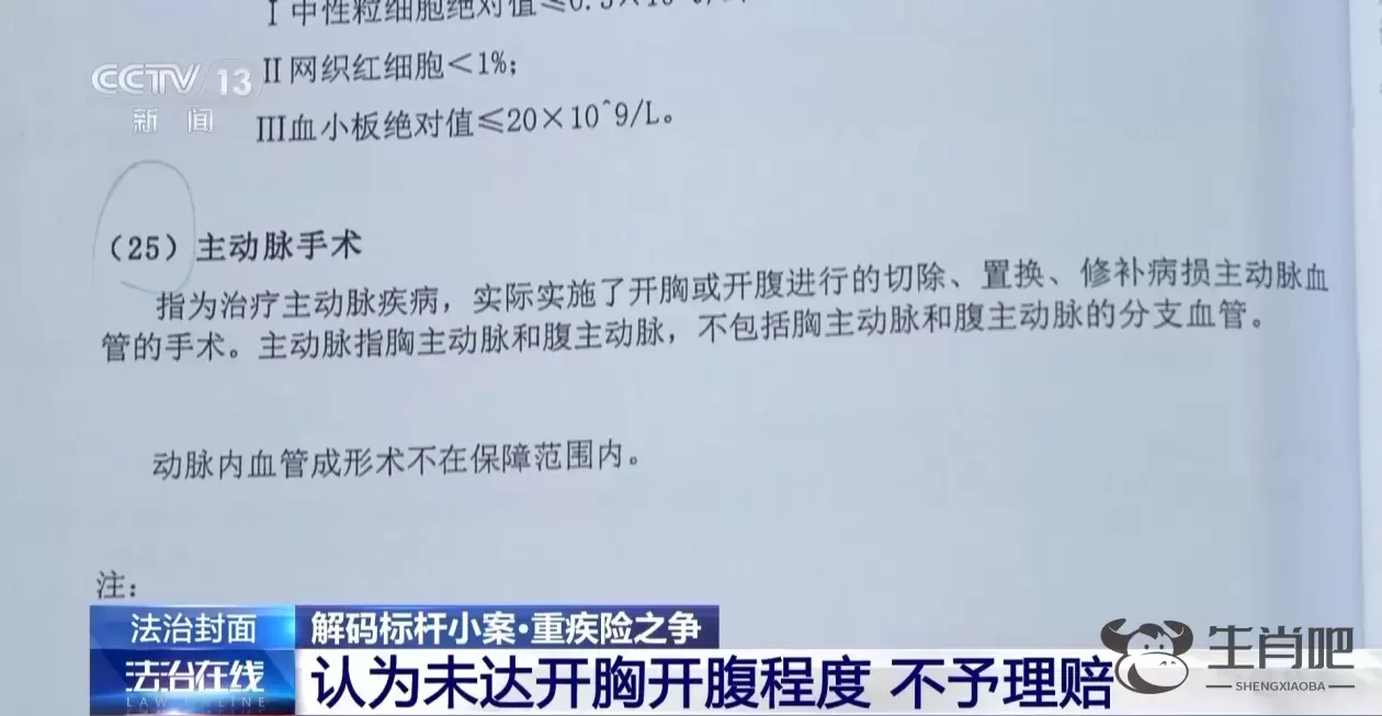 广东省佛山市中级人民法院法官 徐立伟:约定条款中,主动脉手术属于重大疾病40种其中的一种,基本上九成的这种疾病(主动脉夹层B型),全部都是介入手术来完成。也就是说,虽然把这个疾病纳入到40种里,但是绝大部分人患了这种疾病,实际上并不能得到赔偿。