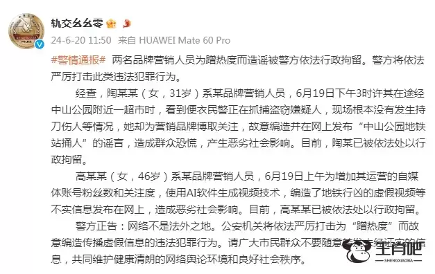 警方正告:网络不是法外之地。公安机关将依法严厉打击为“蹭热度”而故意编造传播虚假信息的违法犯罪行为。请广大市民群众不要随意转发未经证实的信息,共同维护健康清朗的网络舆论环境和良好社会秩序。