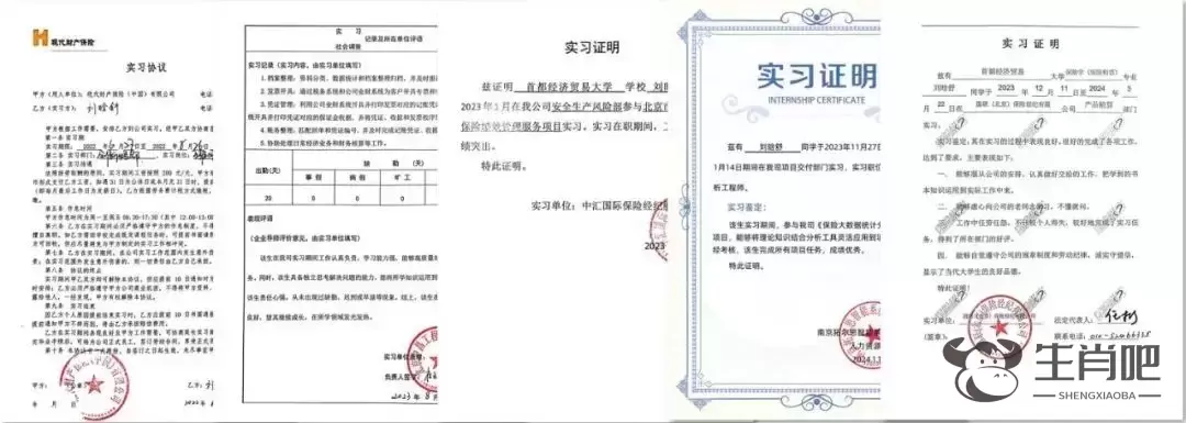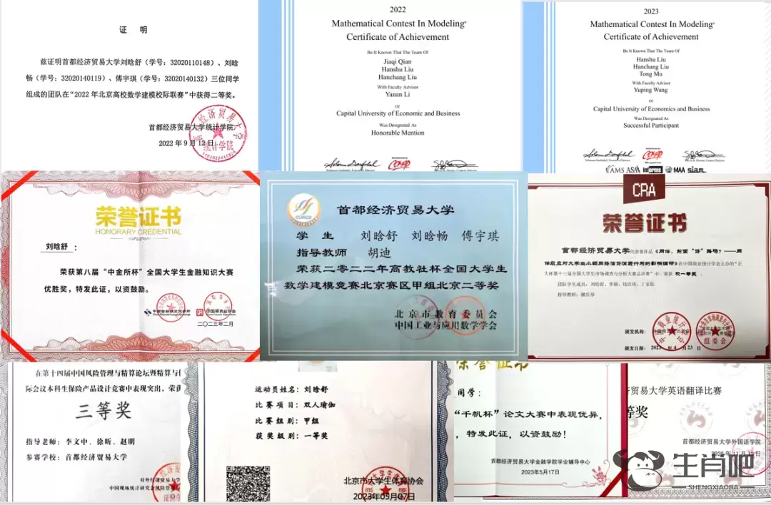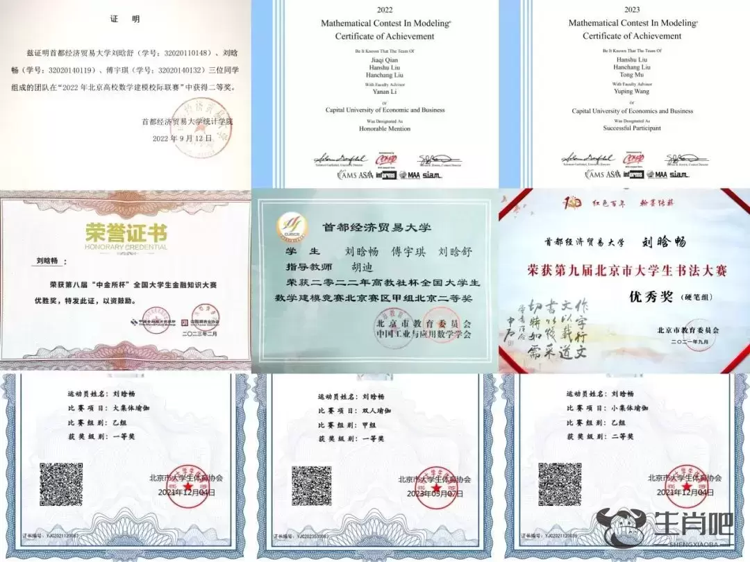 姐姐刘晗舒获得的证书