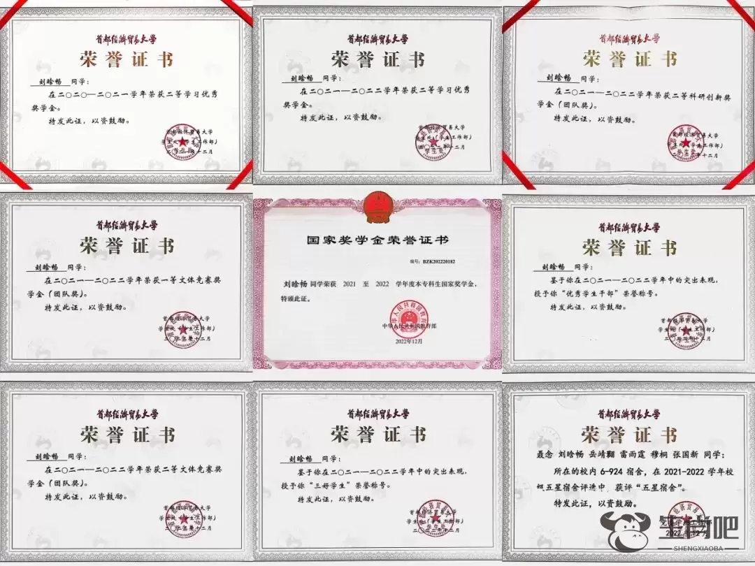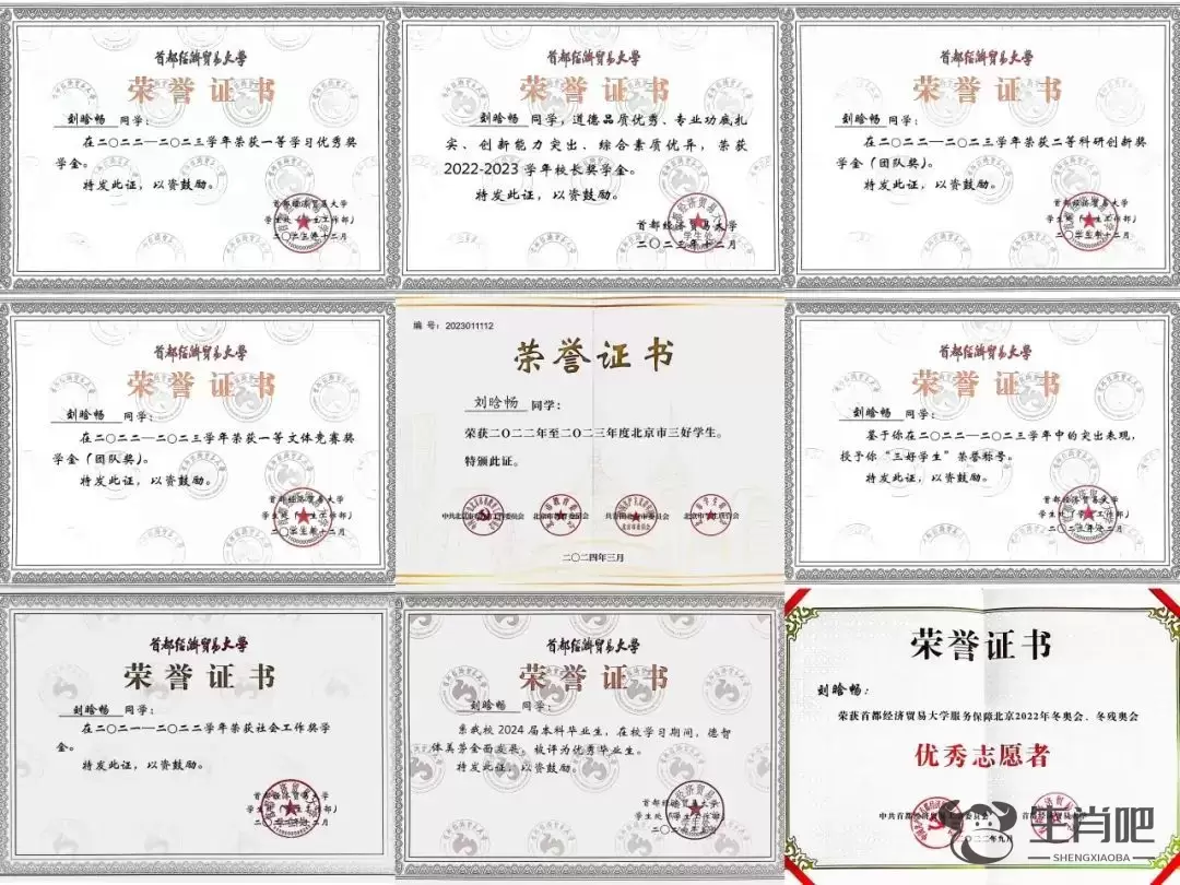 妹妹刘晗畅获得的证书