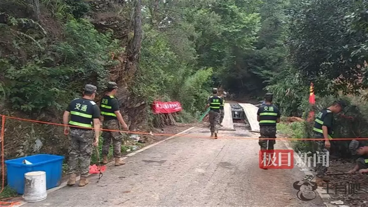 小溪村现场一名志愿者向极目新闻记者介绍,桥梁架设完毕,他还要在现场指挥来往车辆通行,当晚6点半以后,除救援车辆禁止通行。