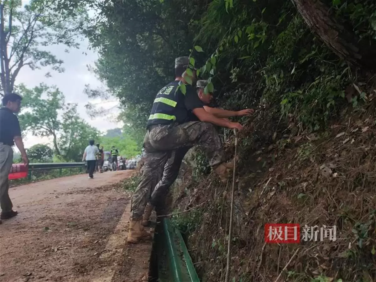 大约半小时后,桥梁加固完毕。两侧车辆和行人开始有序通过。小溪村村民项女士告诉极目新闻记者,她的孩子在王村镇读书,她平时在镇上陪读,家里受灾后,她每天往返小溪村和王村镇,平时骑电动车也就20分钟的路程,但这段路坍塌后,她只能翻山越岭徒步出行,路程要花1个多小时时间,桥梁架设完毕,她进出就方便多了。