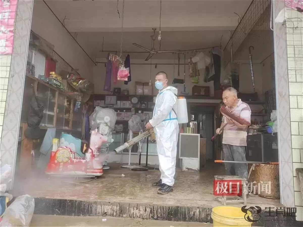 萧县退役军人志愿者在小溪村村民家中消杀(记者拍摄)