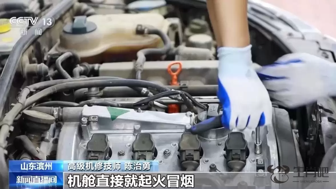 高级机修技师 陈治勇:第一个地方就是电瓶,有些质量相对较差的电瓶在使用一段时间后,会出现鼓包或者漏液的情况。一旦电瓶漏液,就会造成电瓶短路,或者是腐蚀周围的线路。第二个地方就是发动机,有些汽车由于车龄大,发动机气门室盖垫因为老化密封不好,就会出现渗油。如果跑高速,发动机舱的温度会非常高,渗漏出来的机油就会助燃,机舱直接就起火冒烟。第三点,车龄大的车线束容易老化开裂,很容易引起短路。