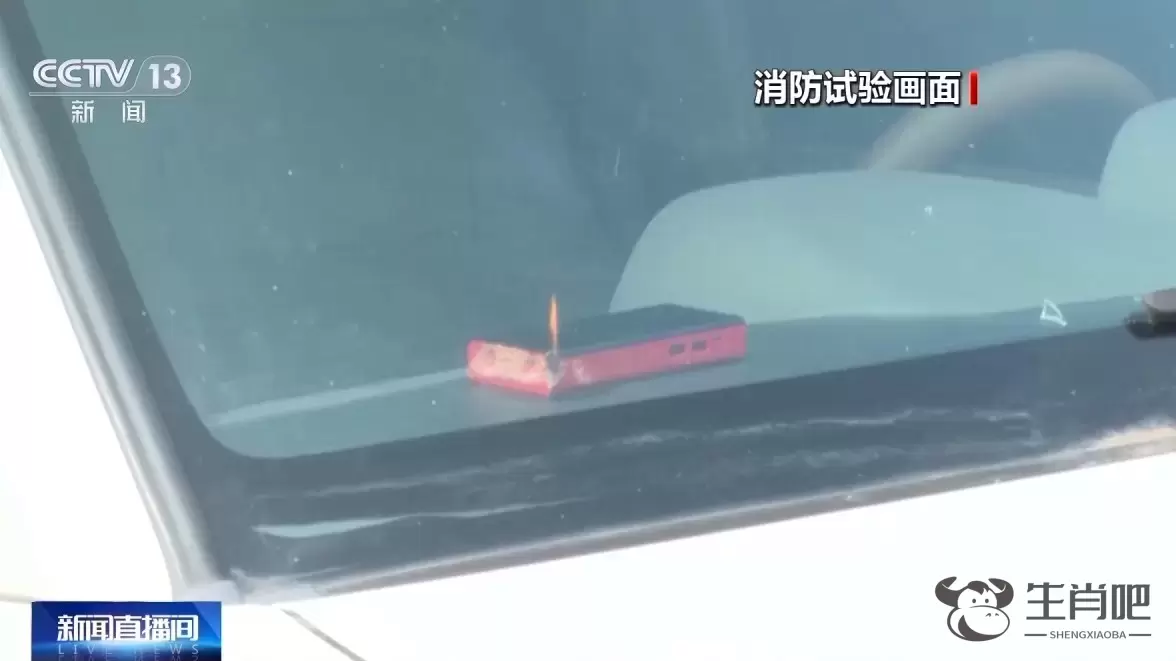 消防员还进行了老花镜和充电宝的夏季车内存放试验。在35摄氏度的高温天气下,车内温度很快超过50摄氏度。试验发现,经过十分钟暴晒后,放在仪表台上的充电宝外壳开始软化,并出现大量白色气泡。大约20分钟后,充电宝一侧很快蹿出火苗。若不是消防员及时扑灭,极有可能引燃车辆。