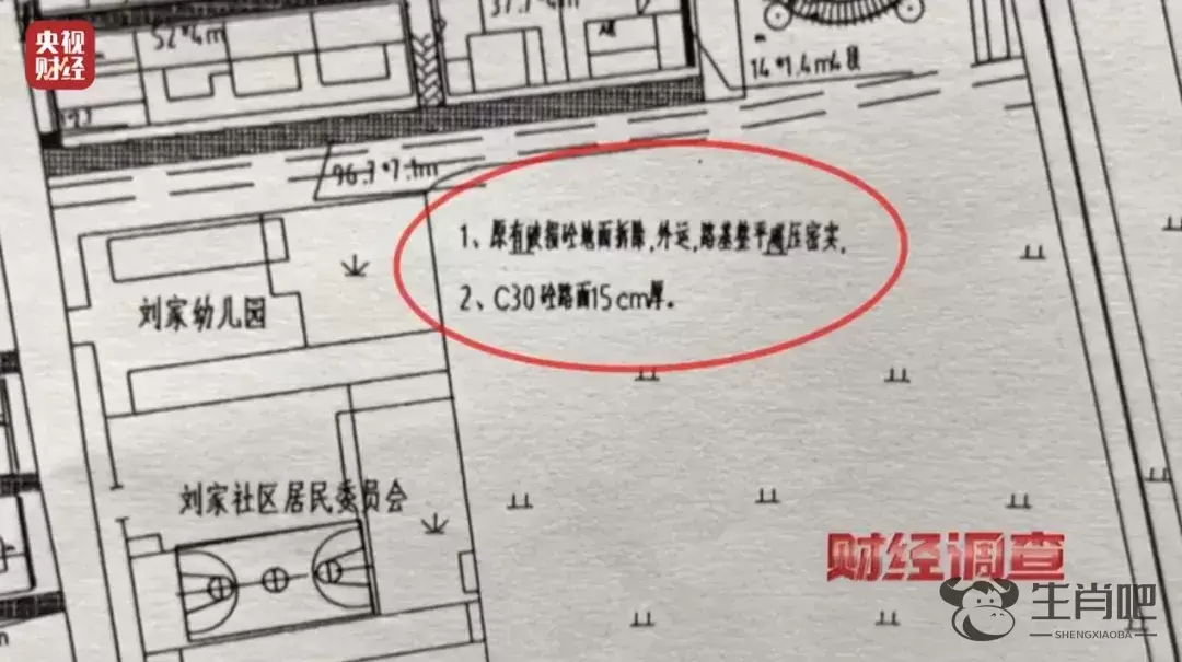 2019年青岛市城阳区上马街道刘家社区美丽乡村规划总平面图“路面竣工图”显示,施工标准为“C30标号砼(水泥)路面15厘米厚”,但实际路面只有2厘米左右,一户村民家门口的水泥路面随意用手就可以抠掉。