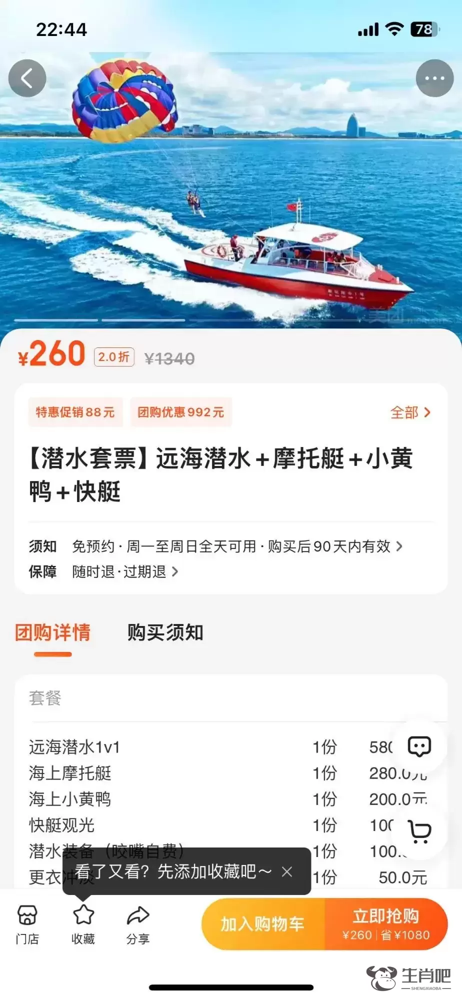 记者来到三亚玛瑞纳酒店码头,展板上写着“潜水380元一位”,通过互联网卖家的介绍,一位摆摊的商家说,交费260元,就可以玩潜水、摩托艇、小黄鸭。