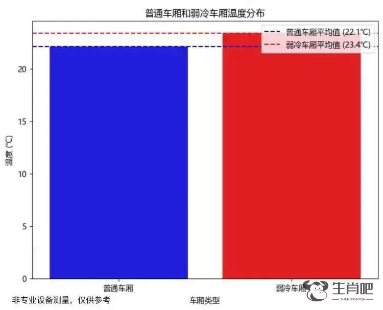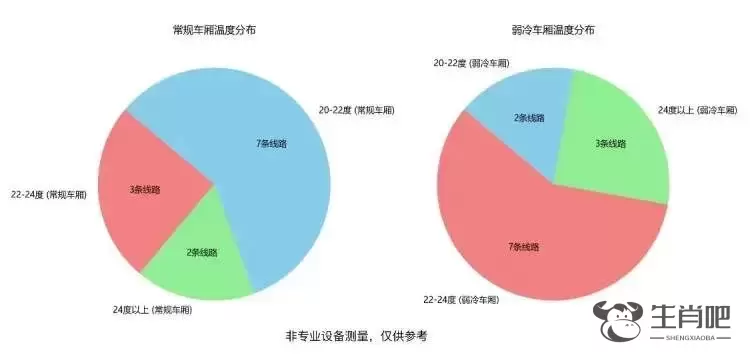 其中,温度最高的为1号线、8号线、11号线的弱冷车厢,温度在25°c左右,温度最低的则为7号线、9号线、13号线、15号线的常规车厢,均在20°c左右,部分车厢的中间区域温度甚至低于20°c。