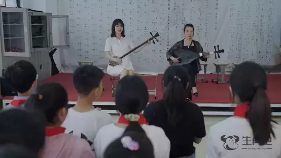 莎莎说,闽南人初听南音,几乎都是从各类民间仪式上,比如红白喜事、乡邻宴席等。莎莎的奶奶是南音忠实听众,9岁那年,她跟着奶奶来看演出,现场正好有几个小孩在跟着老师“咿咿呀呀”地学唱。