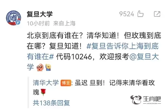 6月26日凌晨,复旦大学官博在该视频下留言:“北京到底有谁在?清华知道!但玫瑰到底在哪?复旦知道!复旦告诉你上海到底有谁在,代码10246,欢迎报考。”