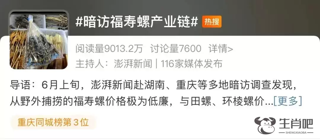 据澎湃新闻报道,记者在湖南、重庆等多地暗访调查发现,从野外捕捞的福寿螺价格极为低廉,与田螺、环棱螺价格相差数倍,多被去壳加工“伪装”成田螺肉,流入市场,经剥壳筛选成串或熟制等工艺后,让人难以分辨。