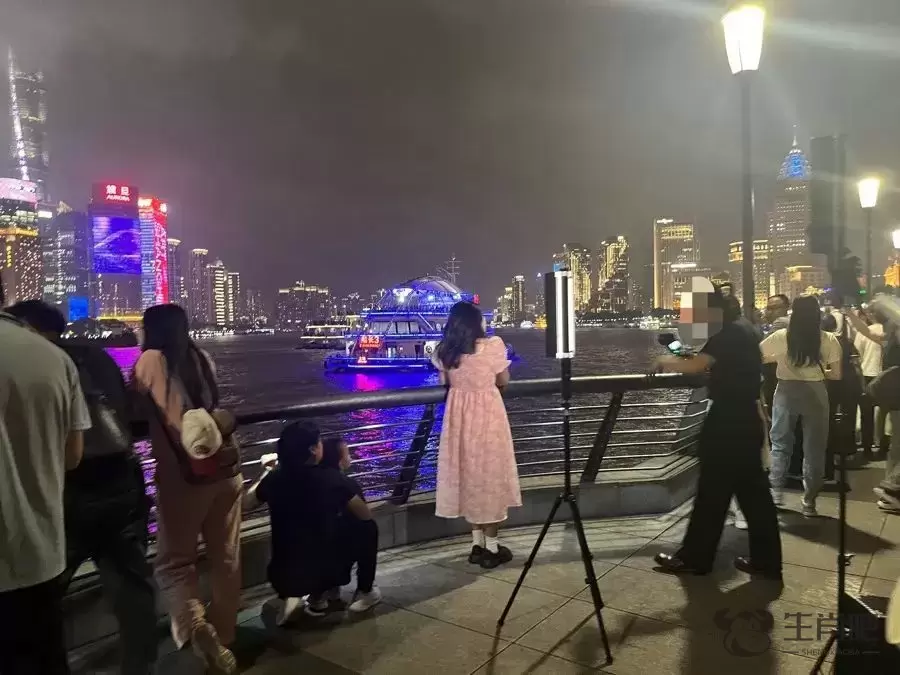 在外滩大道上,类似的观景台几乎每隔十余米便有一个,记者一路查看发现,短短不到百米的距离,补光灯便有四五个,摄影点位几乎遍布了每个弧形观景位,公共游览区域也因此被切分成了一个个私人领域,十分影响观感和体验。