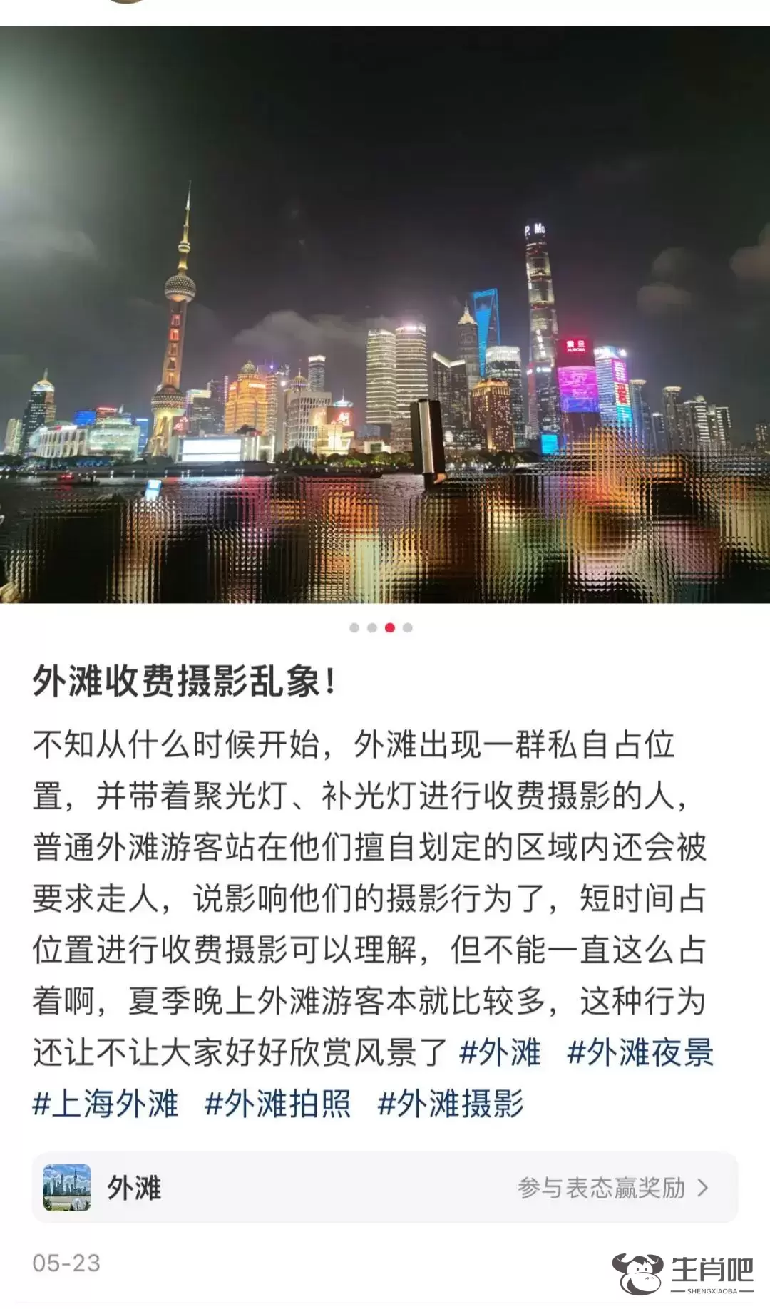 近日,有网友表示,外滩看东方明珠的观景大道一带,有不少人私自占位,并放置补光灯,进行摄影收费,严重影响游客体验。游客站在他们私自划定的区域还会被赶走,原本大家自觉排队拍照,“摄影师”一有顾客就开始赶人。