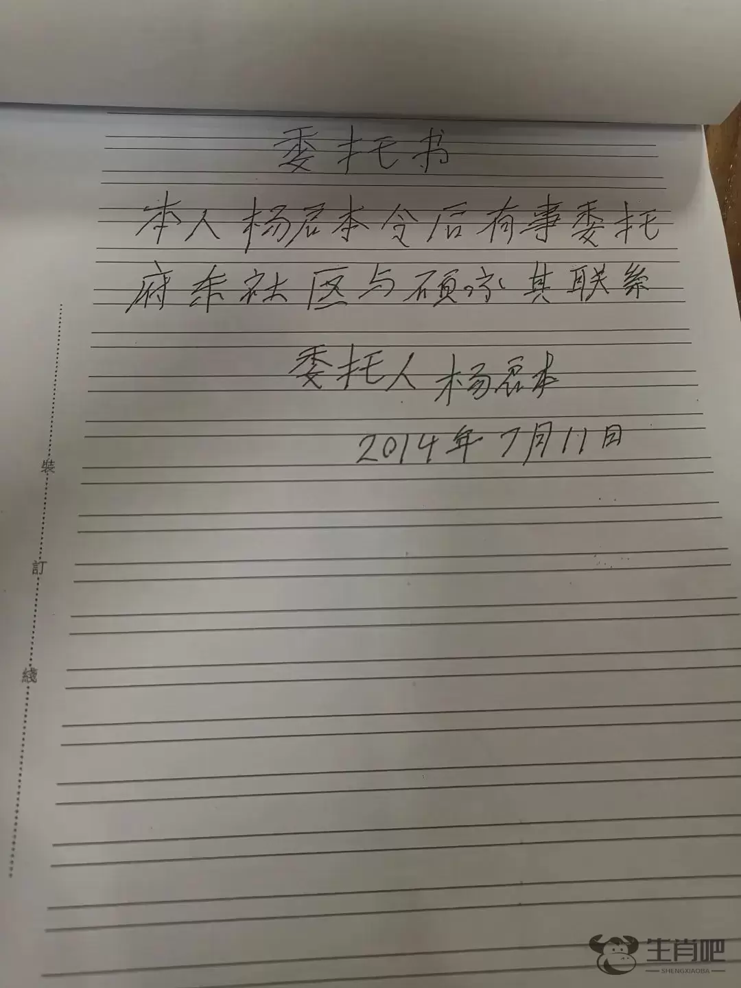 府东社区居委会出具的《关于杨启本晚年生活的情况说明》。