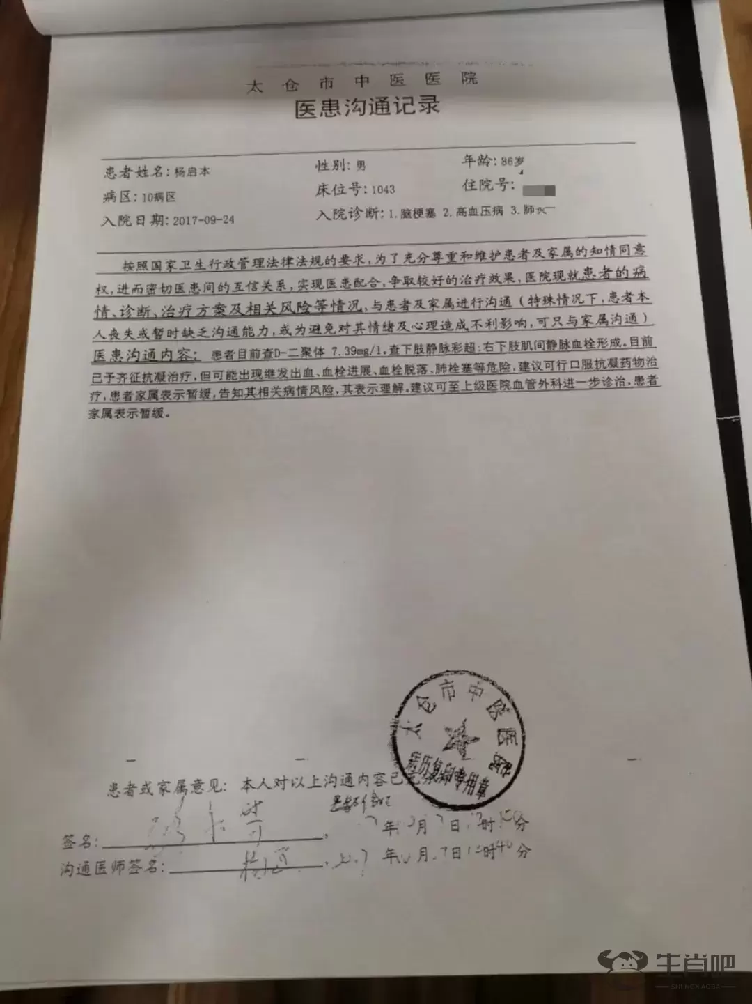 杨启本的鼻息有气,但身上凉了,顾永芳马上打了急救电话,附近的中医院救护车把老人送去就诊。杨启本被诊断为脑梗、半身瘫痪,当时87岁。