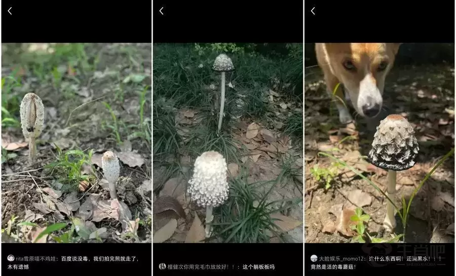 △网友晒出的毛头鬼伞,右边两张的状态已经老化了,不适合食用
