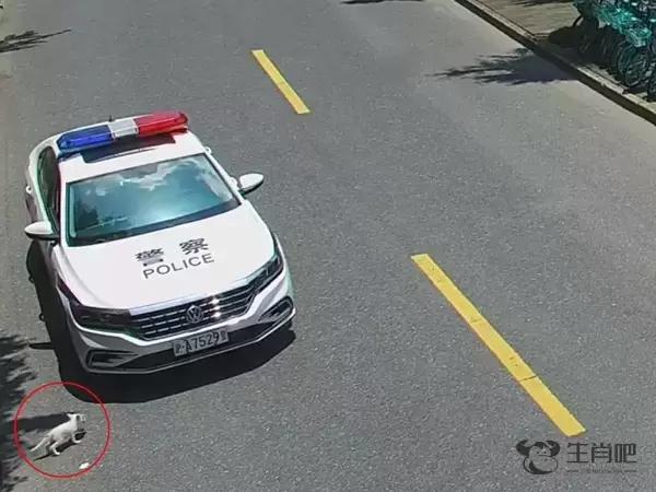 小动物向警车下跑去。本文图片均为上海嘉定警方提供