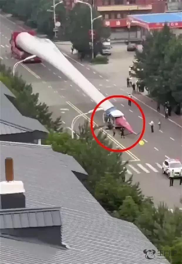 风力发电机叶片穿过整个面包车车体