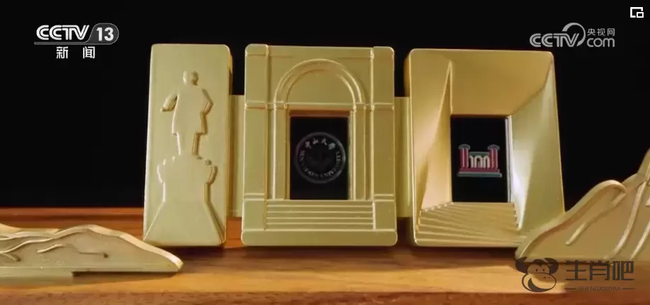 2024年正值中山大学100周年校庆,2024年中大本科录取通知书礼盒名为“百年树人”。礼盒内的金色“世纪之门”徽章以数字“100”的形态汇聚光影,充满科技感。“1”的形象源自广州校区南校园中轴线上的孙中山先生铜像。第一个“0”的造型灵感源自怀士堂大门,镶嵌着雕刻有中大校徽的全息光学石英片,通过光源照射可以投射中山大学校训图案,象征着来自历史的荣光和力量。徽章中第二个“0”中间镶嵌有校友捐赠的芯片制作原材料硅晶圆。