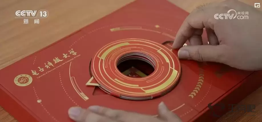 电子科技大学2024年为新生准备的录取通知书,封面是等待开启的日晷机关。开启机关后,映入眼帘的是一块精美的“银杏叶芯片”,固定在日晷上,围绕芯片折射出学校大事记。这片“银杏叶”别具巧思,银杏流沙环绕着一个5毫米见方的“硅芯片”,每一颗都来自电子科技大学师兄师姐的亲手制作。