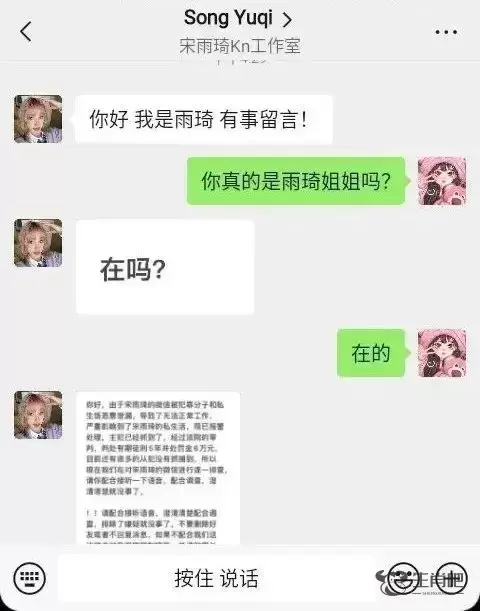 7月1日,盐城一名12岁的学生小徐(化名)在网上意外发现偶像宋雨琦的“私人微信二维码”,小徐抱着试试的心态添加了该微信,期待能与偶像聊天。