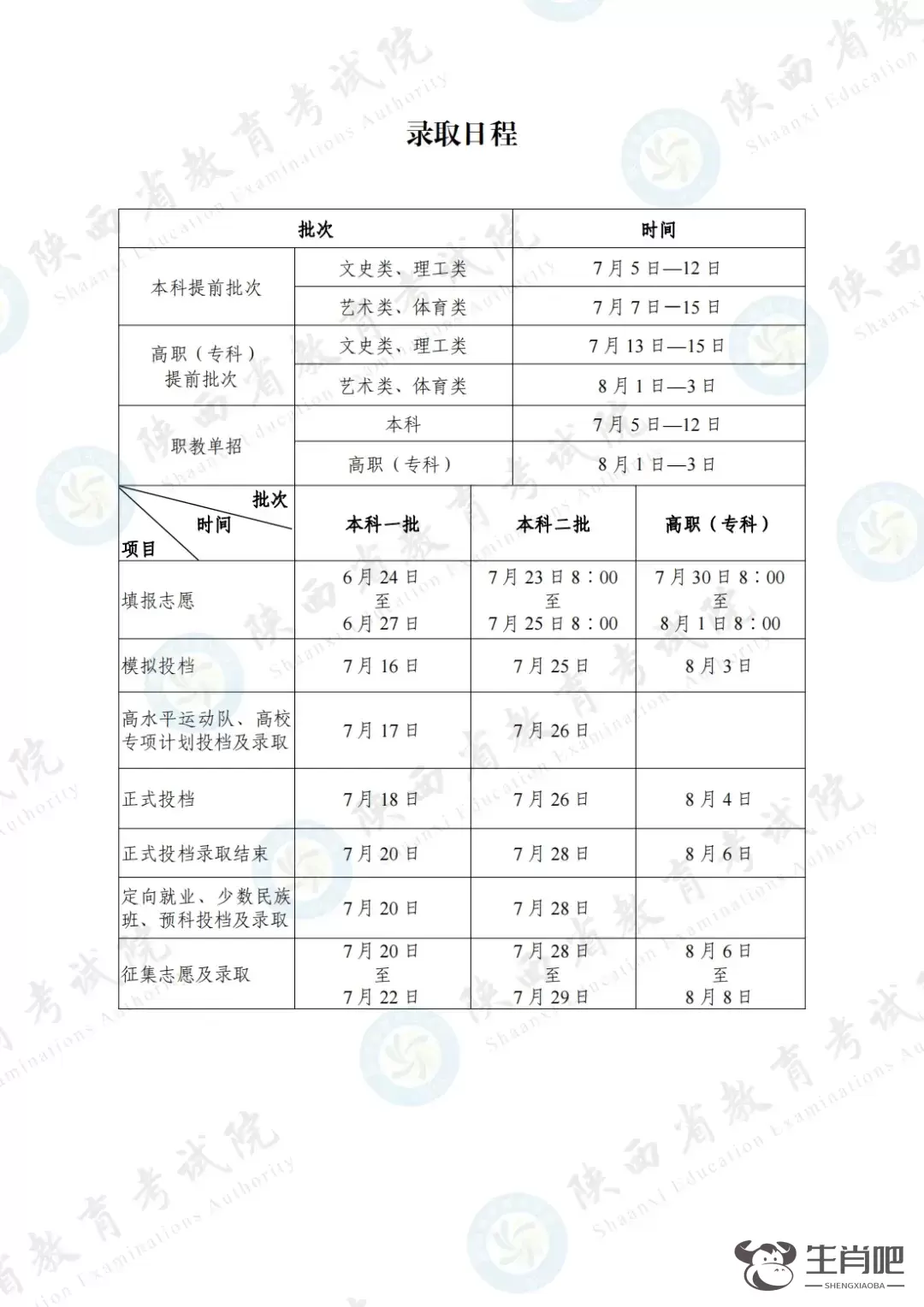今年我省高考录取日程安排如下