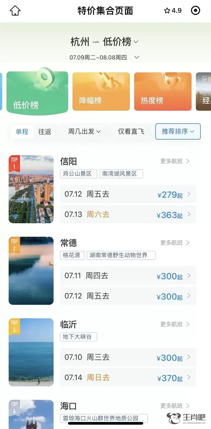 那么,暑假从杭州出发,还有哪些特价机票可以“捡漏”?