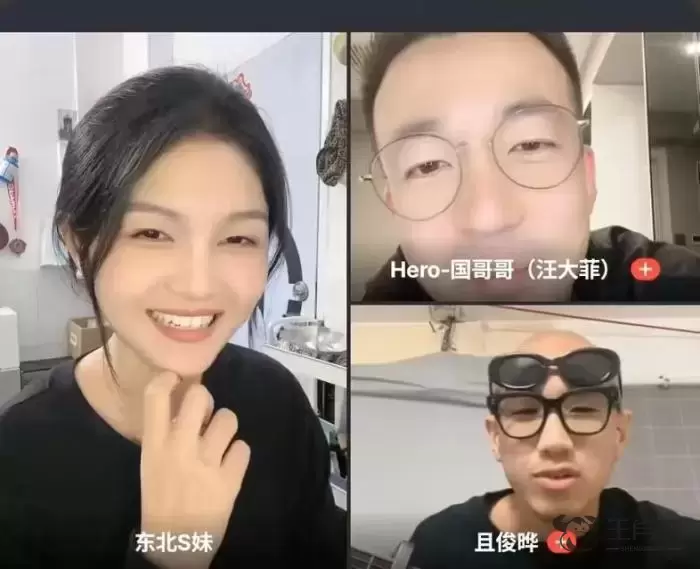 “中S”“汪大菲”与“且俊晔”的同框名场面。短视频平台截图