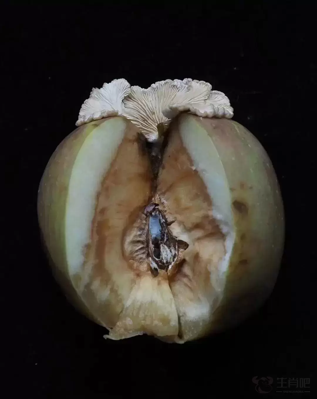 长有蘑菇的苹果。图源:当事人社交账号