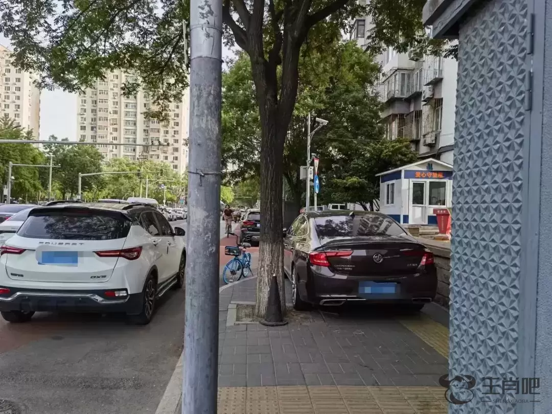 不仅变电箱堵路,机动车也可能停上人行道。采访当天,一辆汽车就停在了变电箱南侧,把人行道占了个满满当当。一位附近居民说: