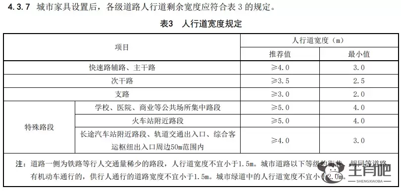 《城市道路城市家具设置与管理规范》对人行道宽度的规定