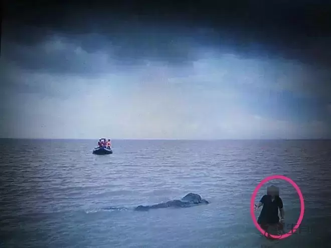 2024年7月12日,上海,江欣(化名)在江水中。 本文图均为上海崇明警方提供