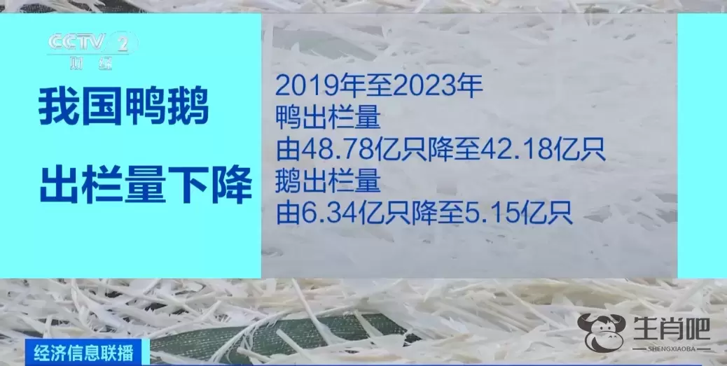 数据显示,从2019年至2023年,我国鸭的出栏量由48.78亿只降至42.18亿只,鹅的出栏量由6.34亿只降至5.15亿只。