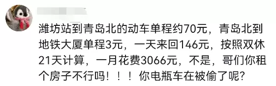 确实,每天5点起床,晚上9点半到家一天有1/4的时间都花在了路上,关键是天天如此,再算算这路费,小编都忍不住问一句“你就不能在青岛租个房吗?这潍坊到底有谁在啊?”