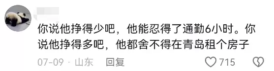 “请问青岛到底给你开几万的工资啊,让你能忍受一天6个小时的通勤”。